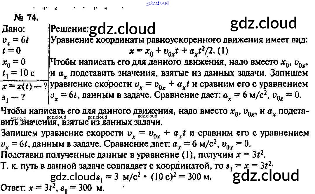 Ответ на задание 74 Задачник Физика за 10, 11 (десятый, одиннадцатый) класс Рымкевич УМК 2013