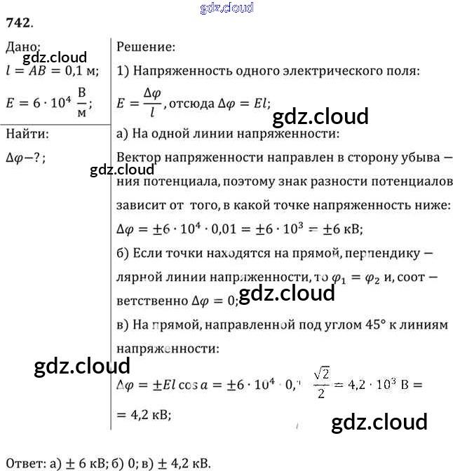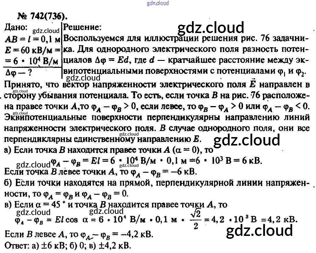 Ответ на задание 742 Задачник Физика за 10, 11 (десятый, одиннадцатый) класс Рымкевич УМК 2013