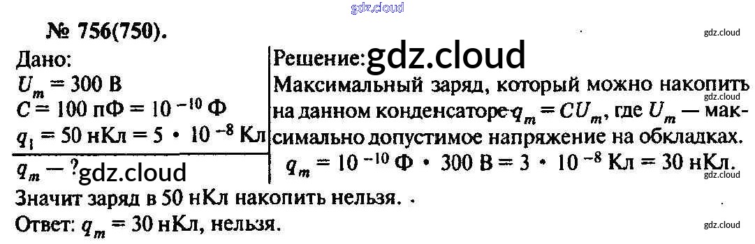 Ответ на задание 756 Задачник Физика за 10, 11 (десятый, одиннадцатый) класс Рымкевич УМК 2013
