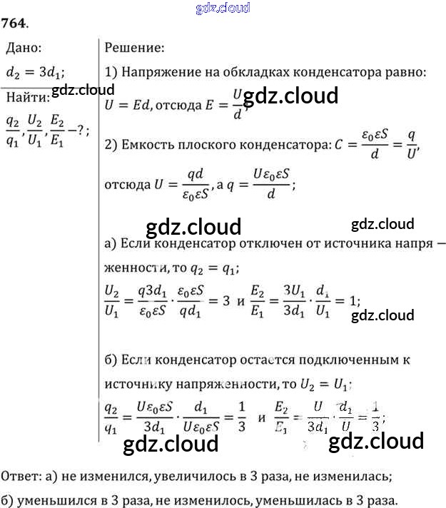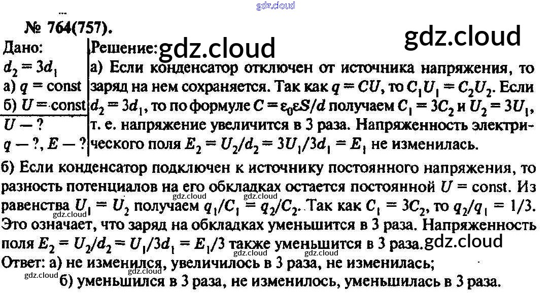 Ответ на задание 764 Задачник Физика за 10, 11 (десятый, одиннадцатый) класс Рымкевич УМК 2013