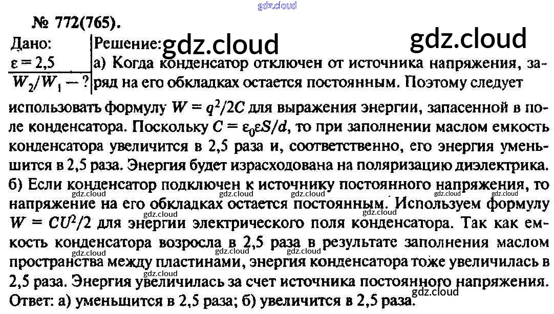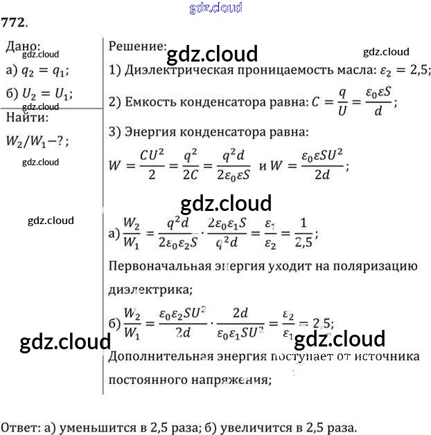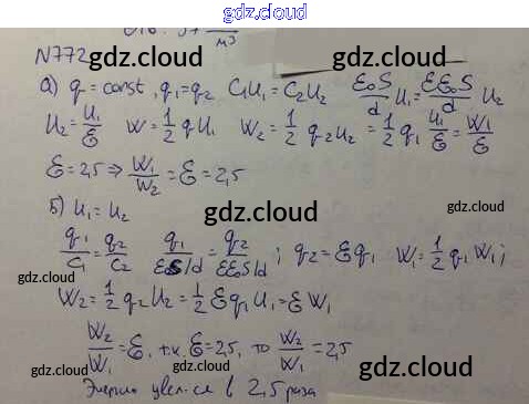 Ответ на задание 772 Задачник Физика за 10, 11 (десятый, одиннадцатый) класс Рымкевич УМК 2013