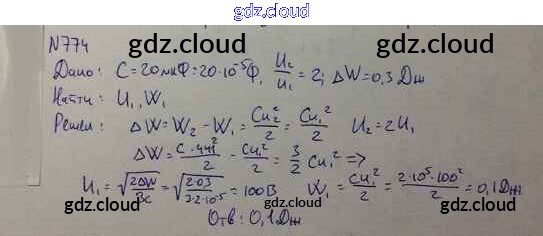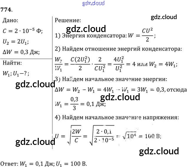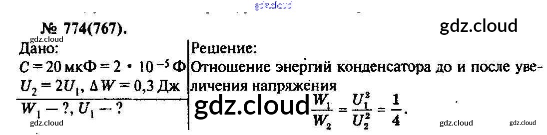Ответ на задание 774 Задачник Физика за 10, 11 (десятый, одиннадцатый) класс Рымкевич УМК 2013