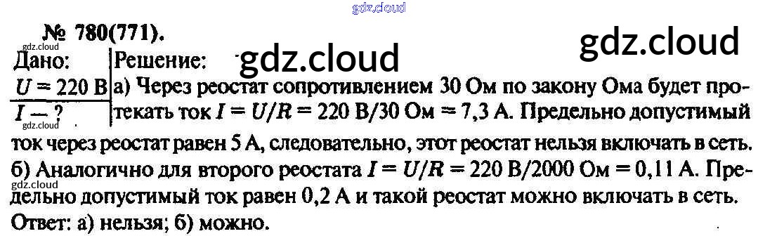 Ответ на задание 780 Задачник Физика за 10, 11 (десятый, одиннадцатый) класс Рымкевич УМК 2013
