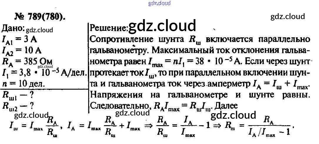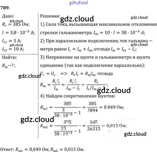 Ответ на задание 789 Задачник Физика за 10, 11 (десятый, одиннадцатый) класс Рымкевич УМК 2013