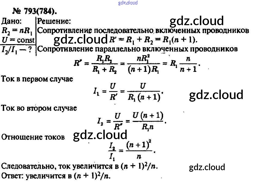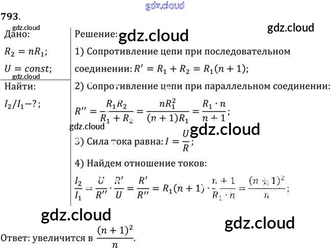 Ответ на задание 793 Задачник Физика за 10, 11 (десятый, одиннадцатый) класс Рымкевич УМК 2013