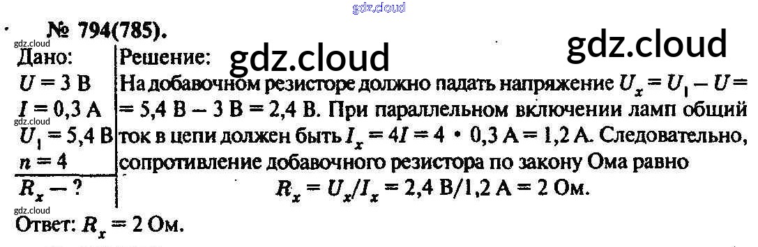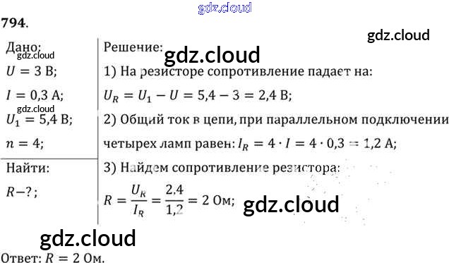 Ответ на задание 794 Задачник Физика за 10, 11 (десятый, одиннадцатый) класс Рымкевич УМК 2013