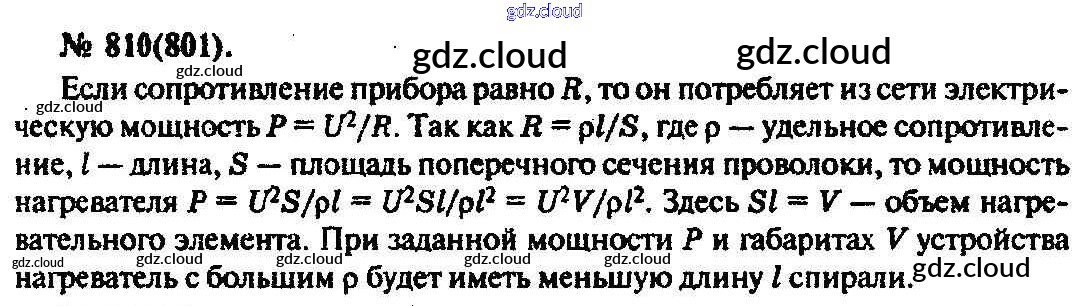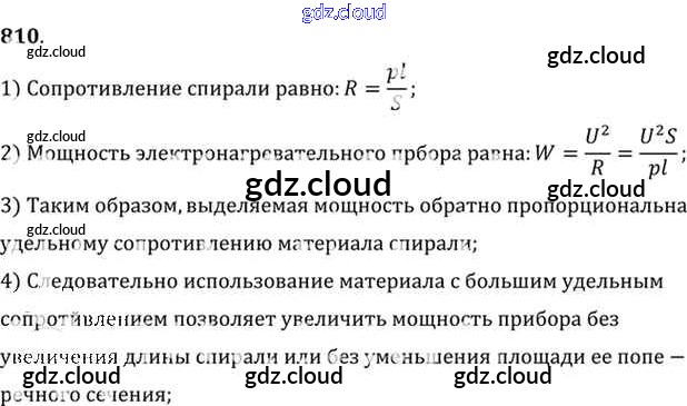 Ответ на задание 810 Задачник Физика за 10, 11 (десятый, одиннадцатый) класс Рымкевич УМК 2013