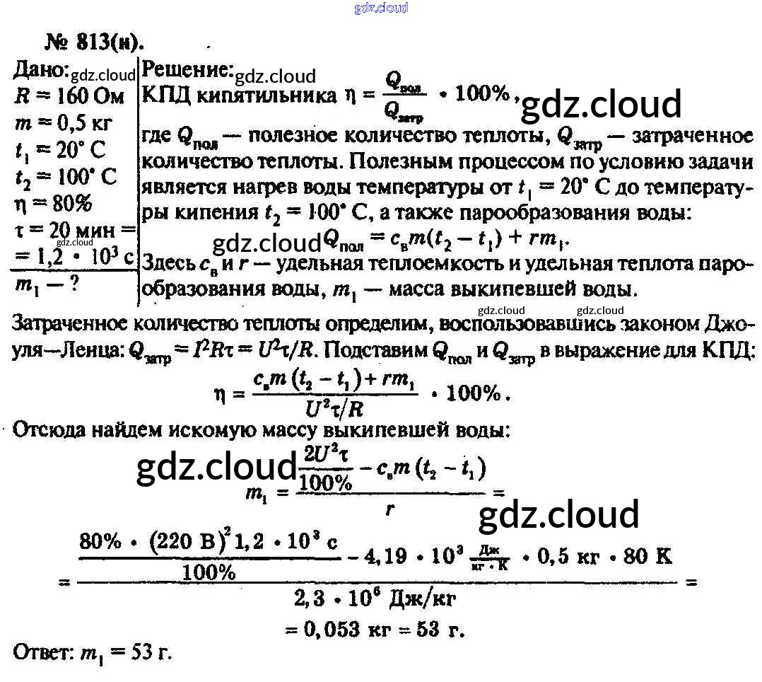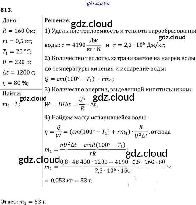 Ответ на задание 813 Задачник Физика за 10, 11 (десятый, одиннадцатый) класс Рымкевич УМК 2013