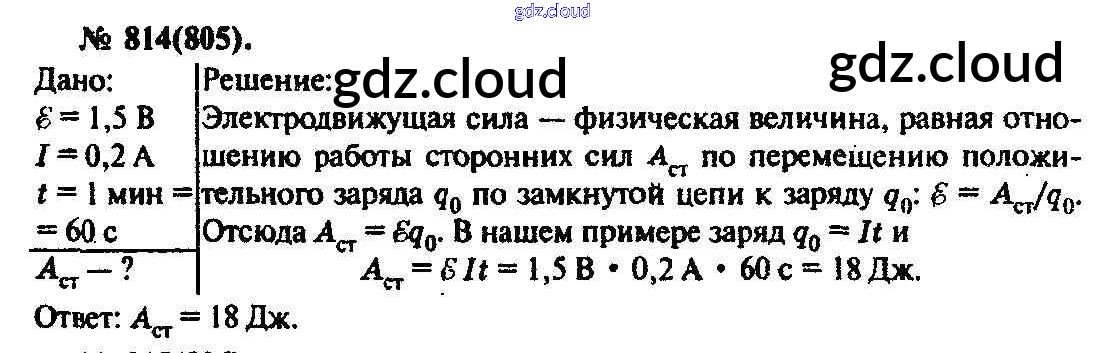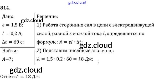 Ответ на задание 814 Задачник Физика за 10, 11 (десятый, одиннадцатый) класс Рымкевич УМК 2013