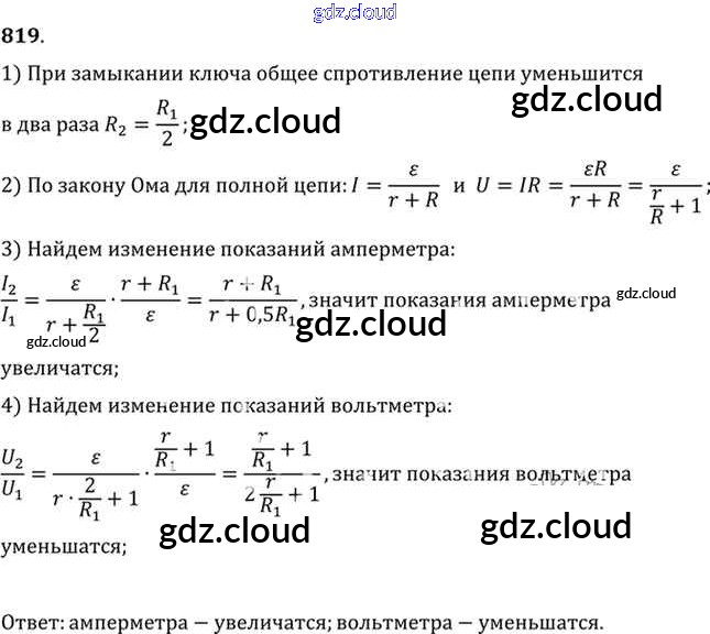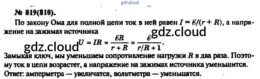 Ответ на задание 819 Задачник Физика за 10, 11 (десятый, одиннадцатый) класс Рымкевич УМК 2013