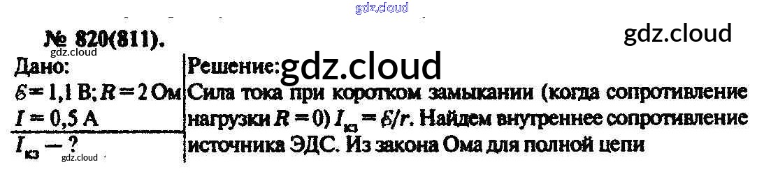 Ответ на задание 820 Задачник Физика за 10, 11 (десятый, одиннадцатый) класс Рымкевич УМК 2013