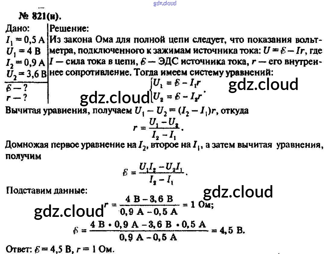 Ответ на задание 821 Задачник Физика за 10, 11 (десятый, одиннадцатый) класс Рымкевич УМК 2013