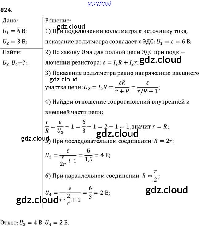 Ответ на задание 824 Задачник Физика за 10, 11 (десятый, одиннадцатый) класс Рымкевич УМК 2013