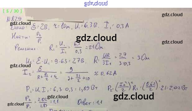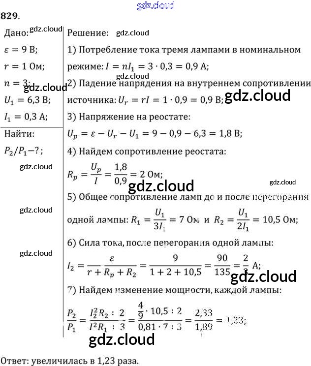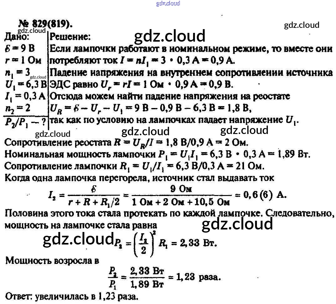 Ответ на задание 829 Задачник Физика за 10, 11 (десятый, одиннадцатый) класс Рымкевич УМК 2013