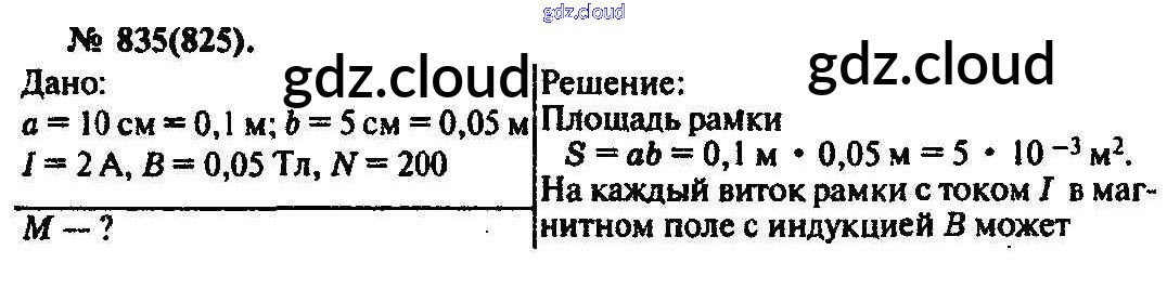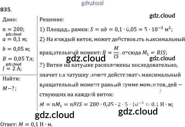 Ответ на задание 835 Задачник Физика за 10, 11 (десятый, одиннадцатый) класс Рымкевич УМК 2013
