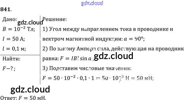 Ответ на задание 841 Задачник Физика за 10, 11 (десятый, одиннадцатый) класс Рымкевич УМК 2013