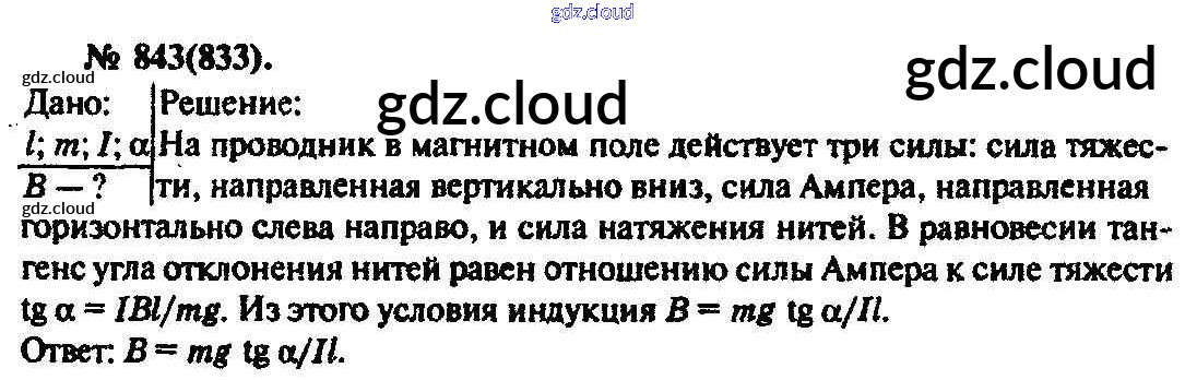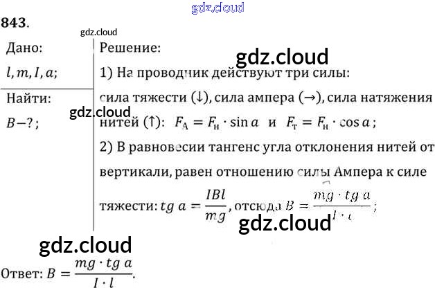 Ответ на задание 843 Задачник Физика за 10, 11 (десятый, одиннадцатый) класс Рымкевич УМК 2013