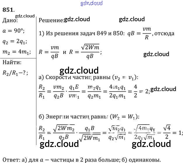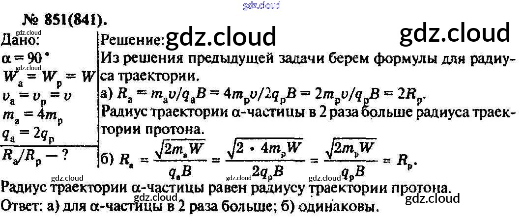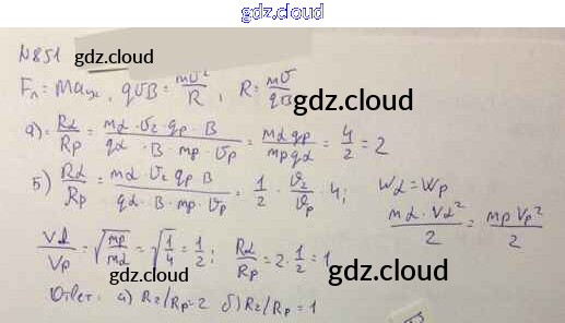 Ответ на задание 851 Задачник Физика за 10, 11 (десятый, одиннадцатый) класс Рымкевич УМК 2013