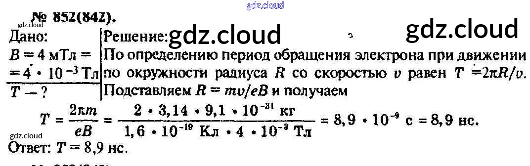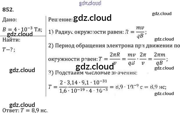 Ответ на задание 852 Задачник Физика за 10, 11 (десятый, одиннадцатый) класс Рымкевич УМК 2013
