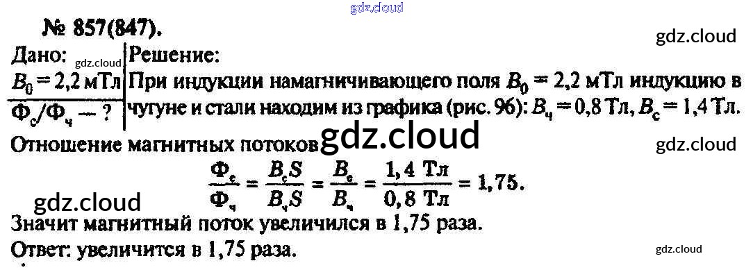 Ответ на задание 857 Задачник Физика за 10, 11 (десятый, одиннадцатый) класс Рымкевич УМК 2013