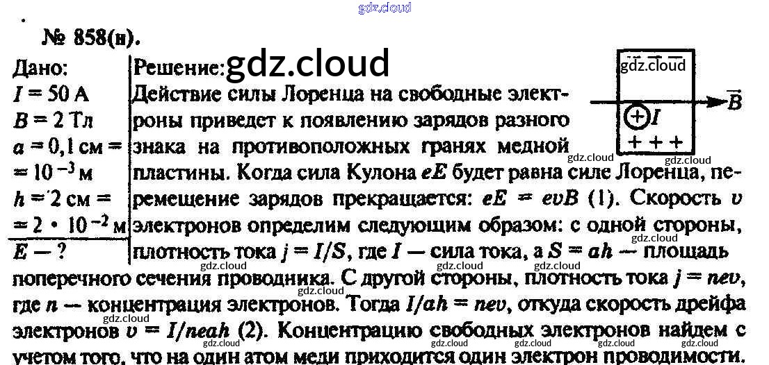 Ответ на задание 858 Задачник Физика за 10, 11 (десятый, одиннадцатый) класс Рымкевич УМК 2013