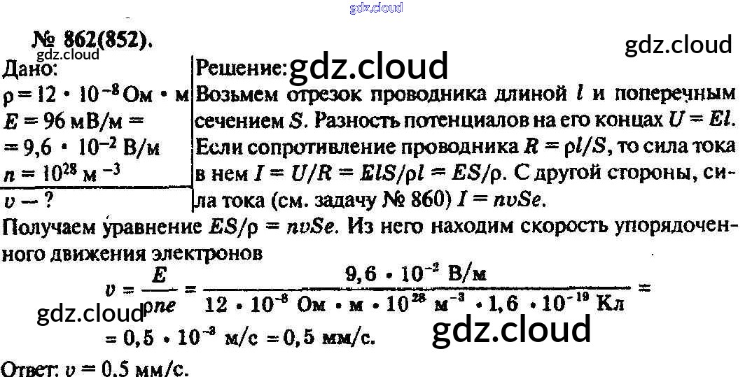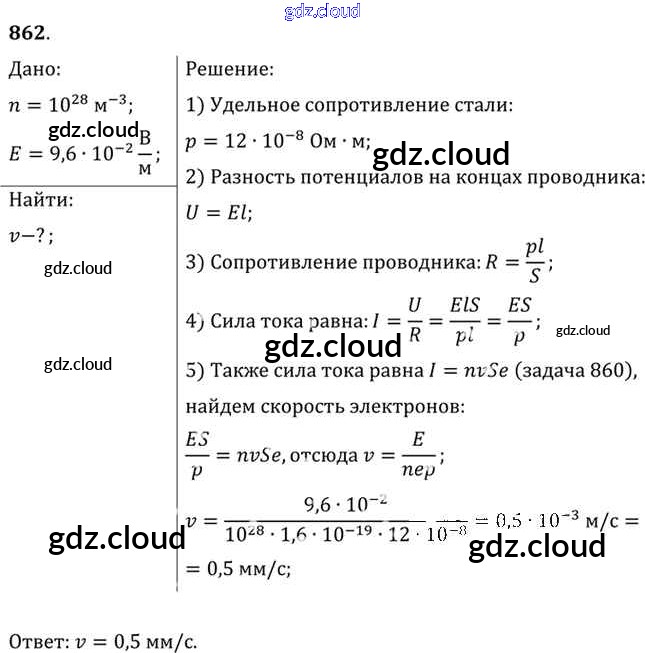 Ответ на задание 862 Задачник Физика за 10, 11 (десятый, одиннадцатый) класс Рымкевич УМК 2013