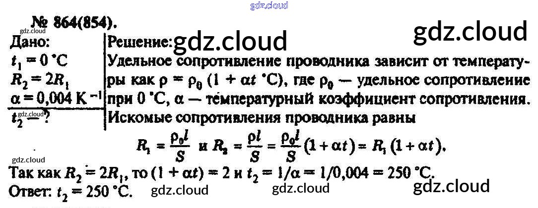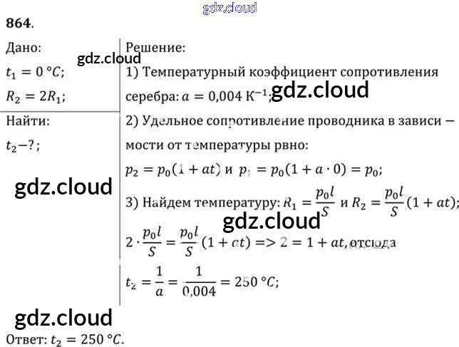 Ответ на задание 864 Задачник Физика за 10, 11 (десятый, одиннадцатый) класс Рымкевич УМК 2013