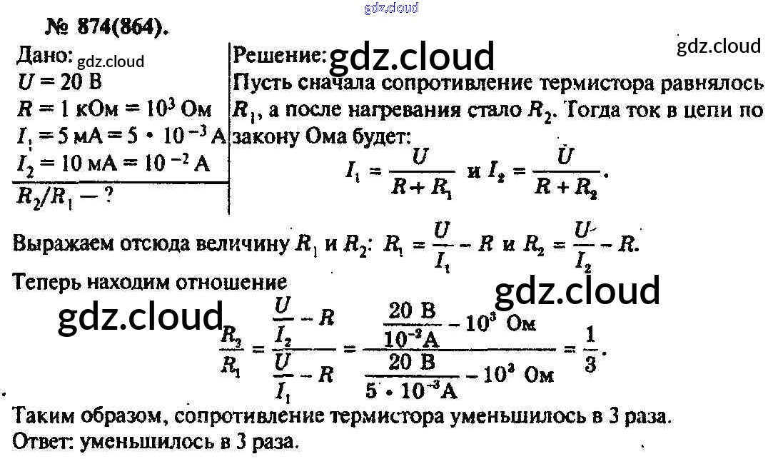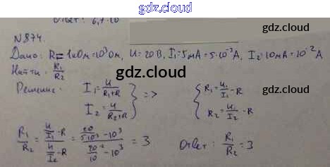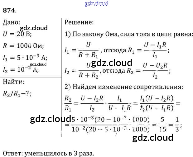 Ответ на задание 874 Задачник Физика за 10, 11 (десятый, одиннадцатый) класс Рымкевич УМК 2013