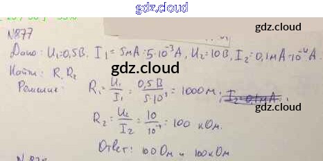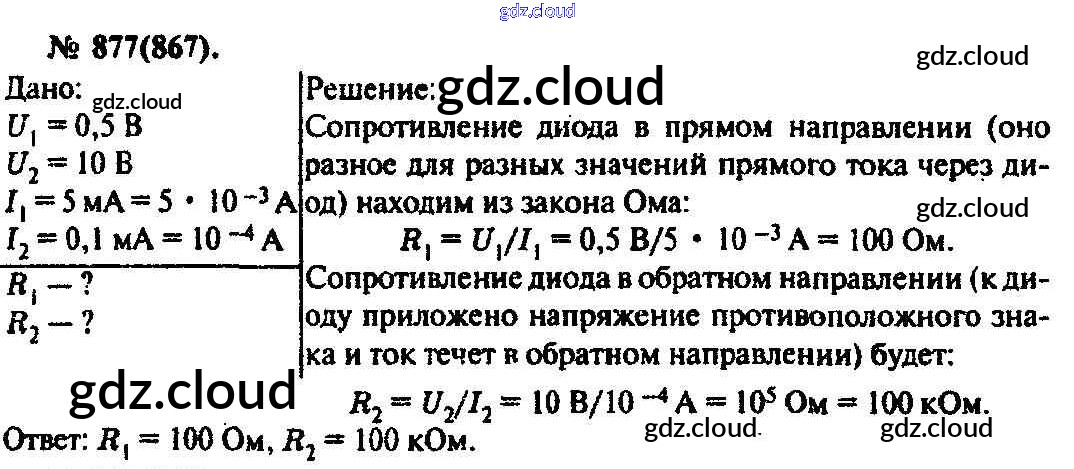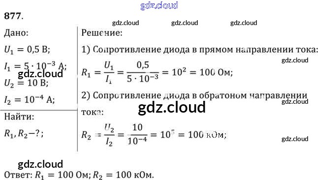 Ответ на задание 877 Задачник Физика за 10, 11 (десятый, одиннадцатый) класс Рымкевич УМК 2013