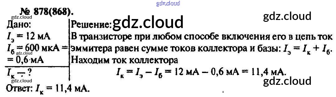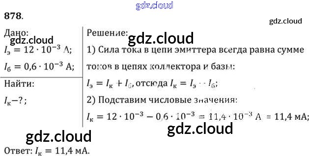 Ответ на задание 878 Задачник Физика за 10, 11 (десятый, одиннадцатый) класс Рымкевич УМК 2013