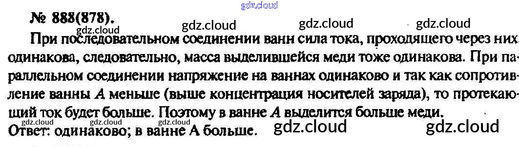 Ответ на задание 888 Задачник Физика за 10, 11 (десятый, одиннадцатый) класс Рымкевич УМК 2013