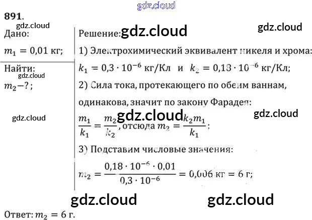 Ответ на задание 891 Задачник Физика за 10, 11 (десятый, одиннадцатый) класс Рымкевич УМК 2013