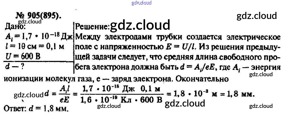 Ответ на задание 905 Задачник Физика за 10, 11 (десятый, одиннадцатый) класс Рымкевич УМК 2013