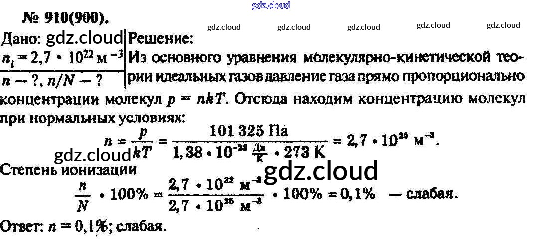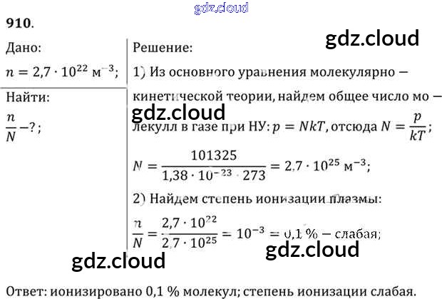 Ответ на задание 910 Задачник Физика за 10, 11 (десятый, одиннадцатый) класс Рымкевич УМК 2013