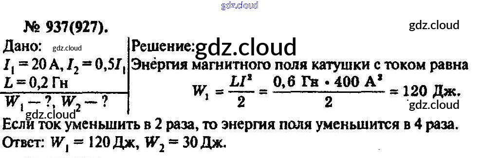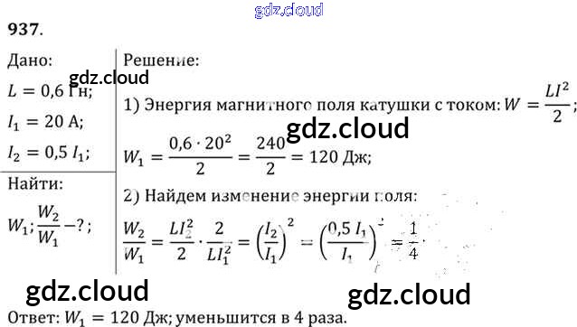 Ответ на задание 937 Задачник Физика за 10, 11 (десятый, одиннадцатый) класс Рымкевич УМК 2013