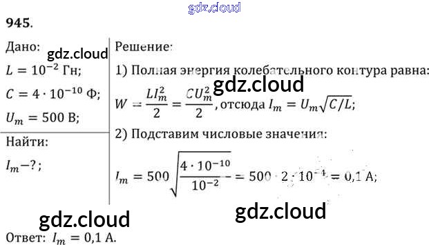 Ответ на задание 945 Задачник Физика за 10, 11 (десятый, одиннадцатый) класс Рымкевич УМК 2013