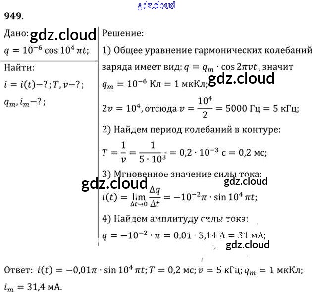 Ответ на задание 949 Задачник Физика за 10, 11 (десятый, одиннадцатый) класс Рымкевич УМК 2013