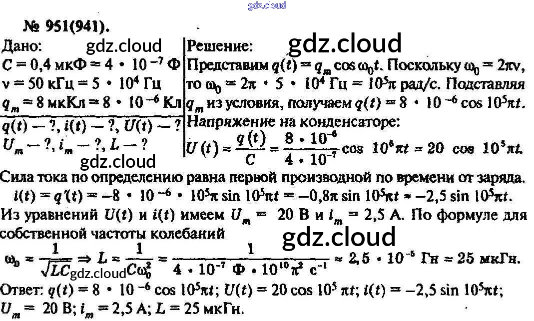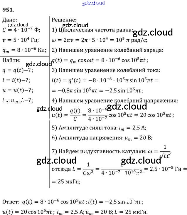 Ответ на задание 951 Задачник Физика за 10, 11 (десятый, одиннадцатый) класс Рымкевич УМК 2013