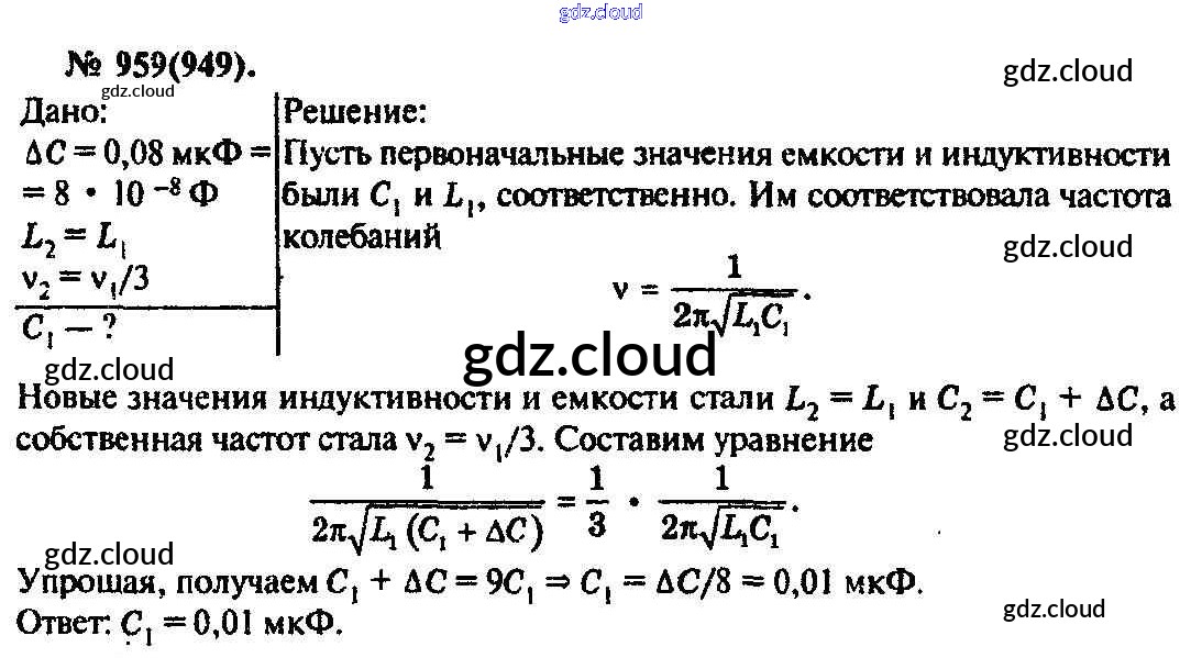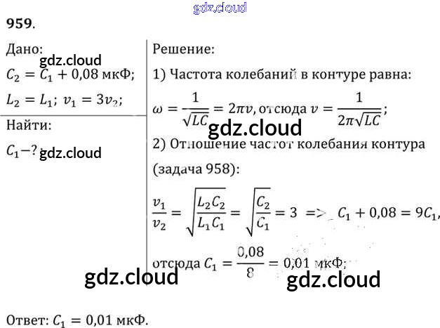 Ответ на задание 959 Задачник Физика за 10, 11 (десятый, одиннадцатый) класс Рымкевич УМК 2013