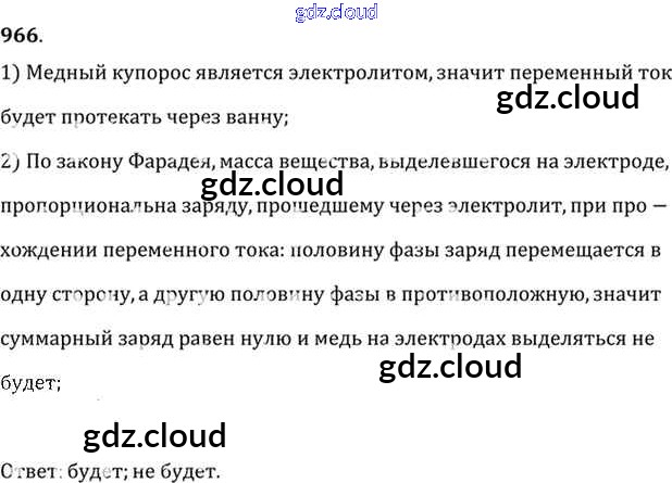 Ответ на задание 966 Задачник Физика за 10, 11 (десятый, одиннадцатый) класс Рымкевич УМК 2013
