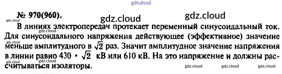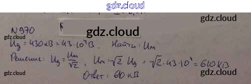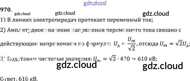 Ответ на задание 970 Задачник Физика за 10, 11 (десятый, одиннадцатый) класс Рымкевич УМК 2013