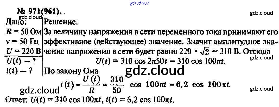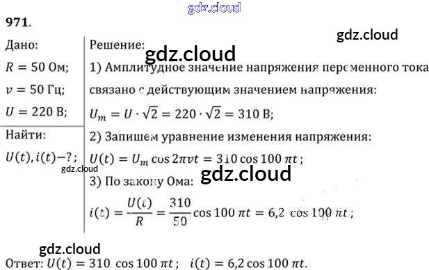 Ответ на задание 971 Задачник Физика за 10, 11 (десятый, одиннадцатый) класс Рымкевич УМК 2013