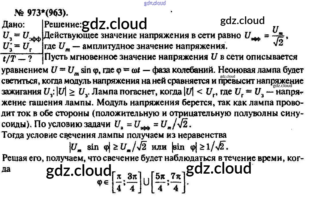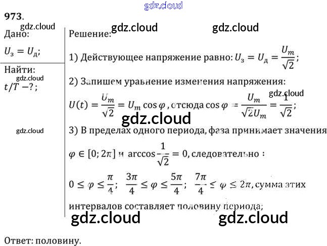 Ответ на задание 973 Задачник Физика за 10, 11 (десятый, одиннадцатый) класс Рымкевич УМК 2013