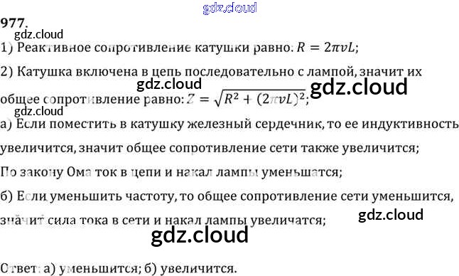 Ответ на задание 977 Задачник Физика за 10, 11 (десятый, одиннадцатый) класс Рымкевич УМК 2013