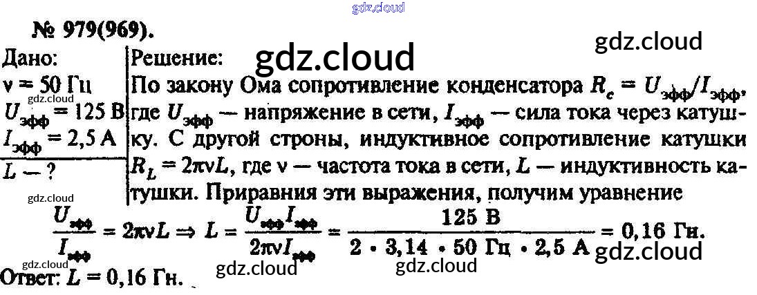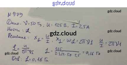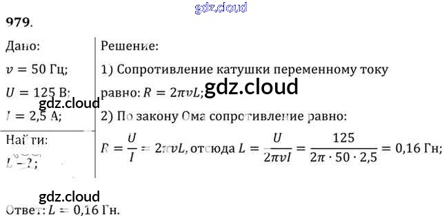 Ответ на задание 979 Задачник Физика за 10, 11 (десятый, одиннадцатый) класс Рымкевич УМК 2013
