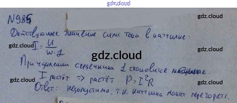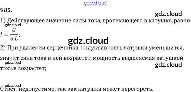 Ответ на задание 985 Задачник Физика за 10, 11 (десятый, одиннадцатый) класс Рымкевич УМК 2013