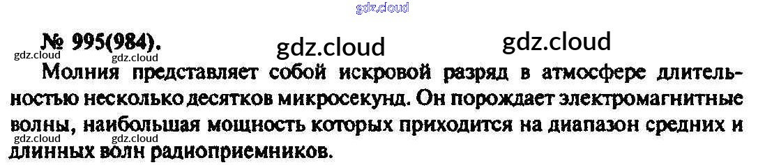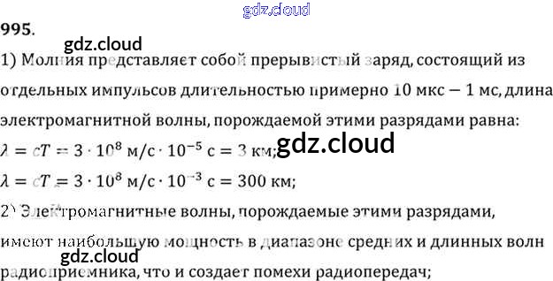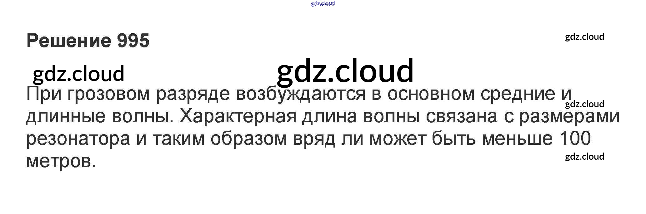 Ответ на задание 995 Задачник Физика за 10, 11 (десятый, одиннадцатый) класс Рымкевич УМК 2013