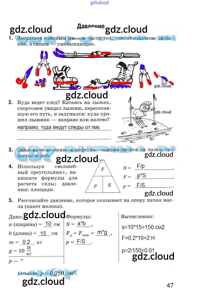 Ответ на задание 47 Рабочая тетрадь Физика за 5 (пятый) класс Гуревич, Краснов, Нотов 0 ФГОС онлайн и без номера телефона.