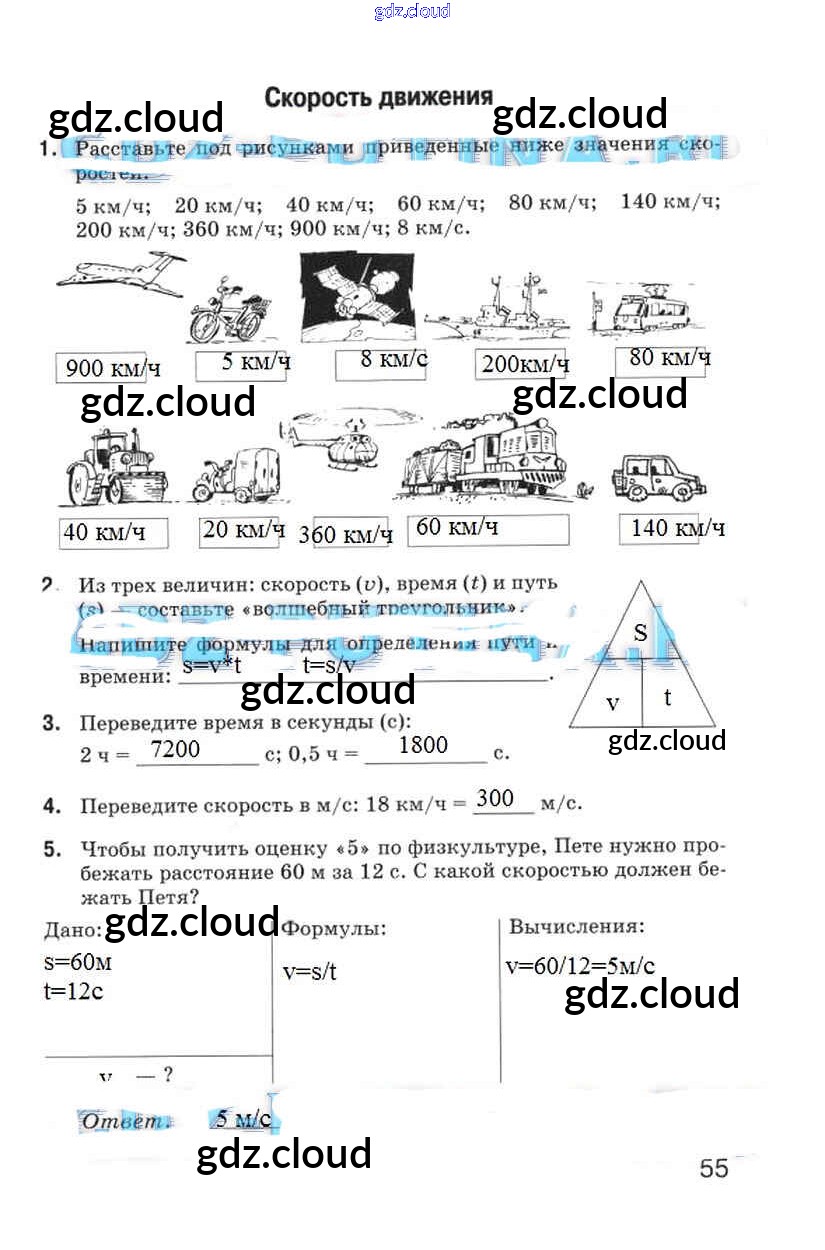 Ответ на задание 55 Рабочая тетрадь Физика за 5 (пятый) класс Гуревич, Краснов, Нотов 0 ФГОС онлайн и без номера телефона.