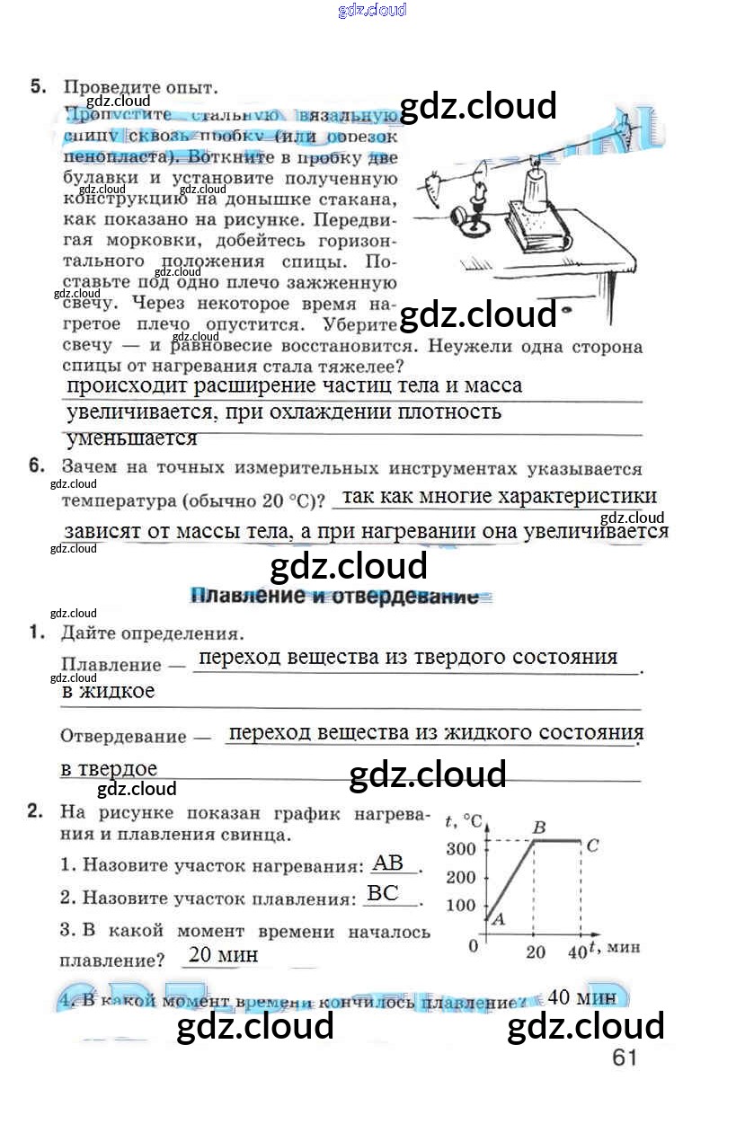 Ответы к страницам по Физике 5 класс Рабочая тетрадь Гуревич Дрофа